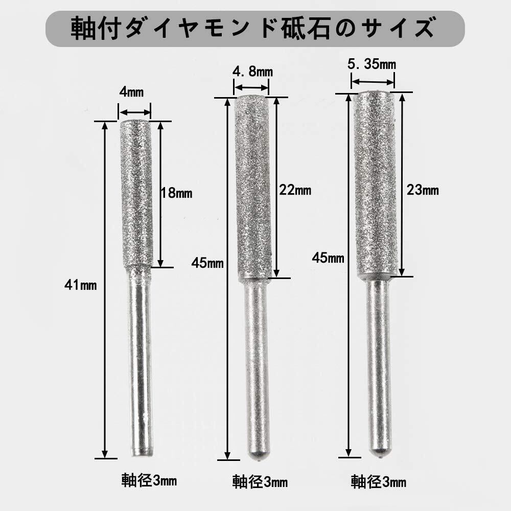 KIMLONTON軸付砥石 ダイヤモンド砥石 4.0mm 4.8mm 5.35mm ダイヤモンドバー 円筒形 3mmシャンク チェーンソー研削ヘッド9本入りセット ミニルーター・リューター・ ルーター・研磨機 対応