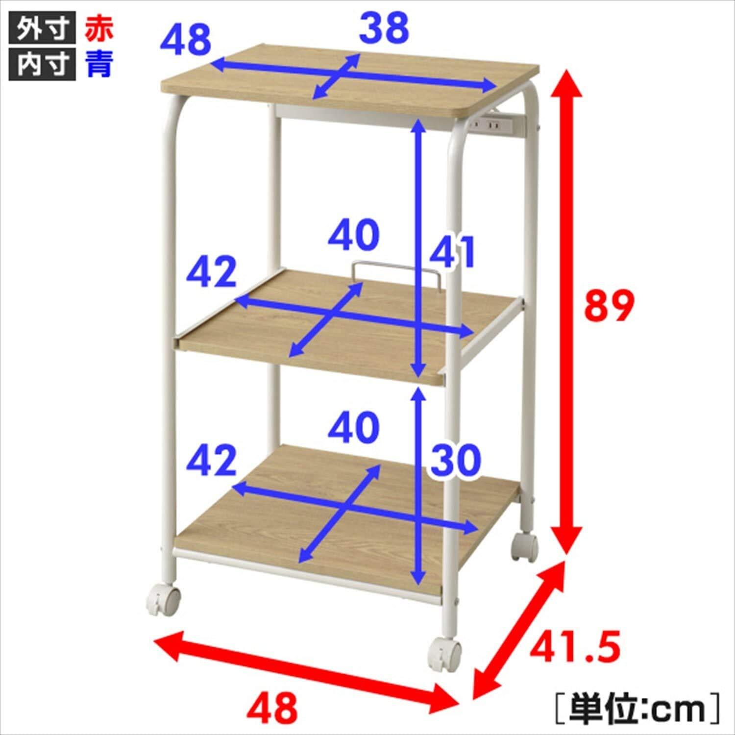 耐荷重:全体=30kg(天板=20kg、スライド棚=5kg、下棚=15kgのうち30kg)