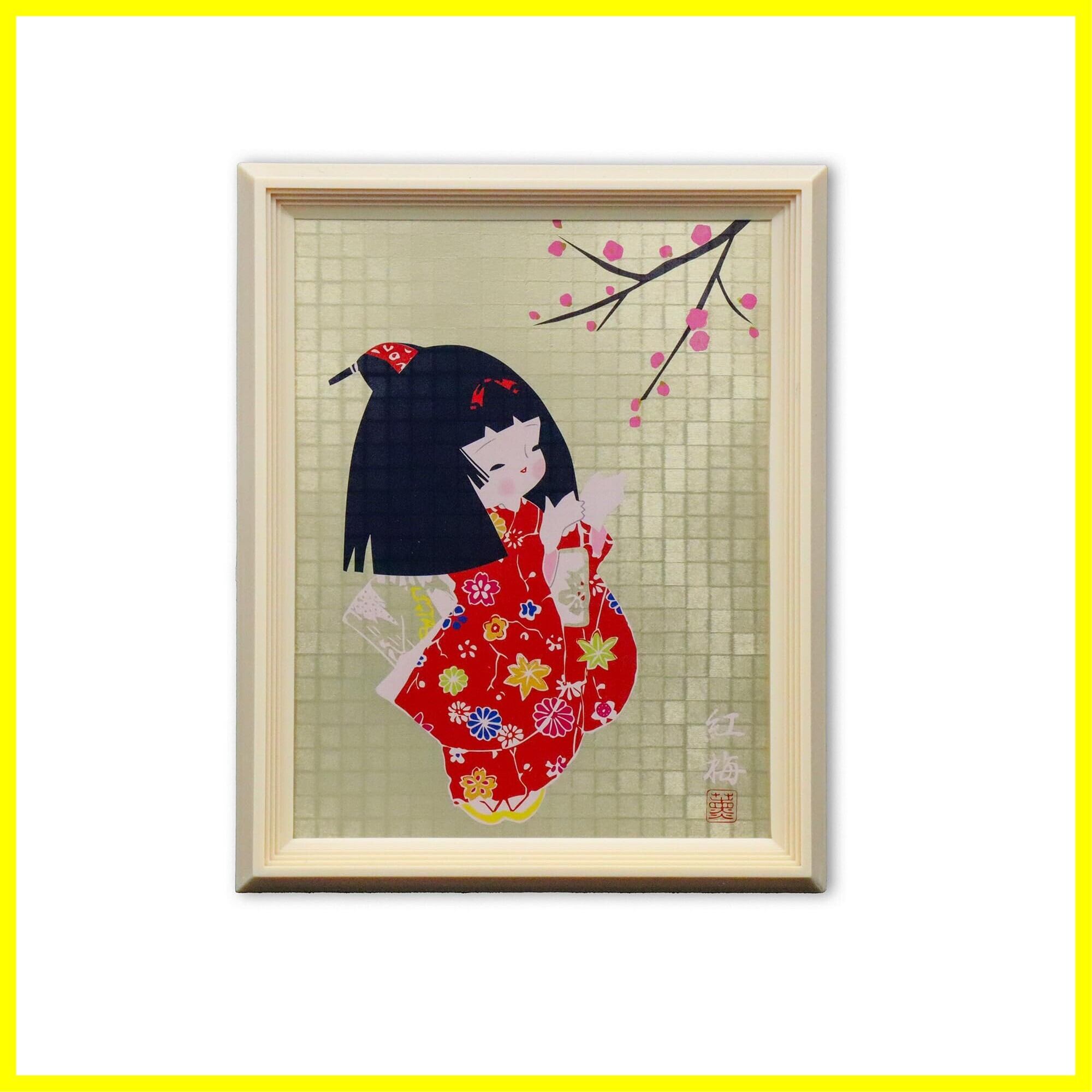 日本のおみやげ 昭和レトロ 人形額(紅梅)