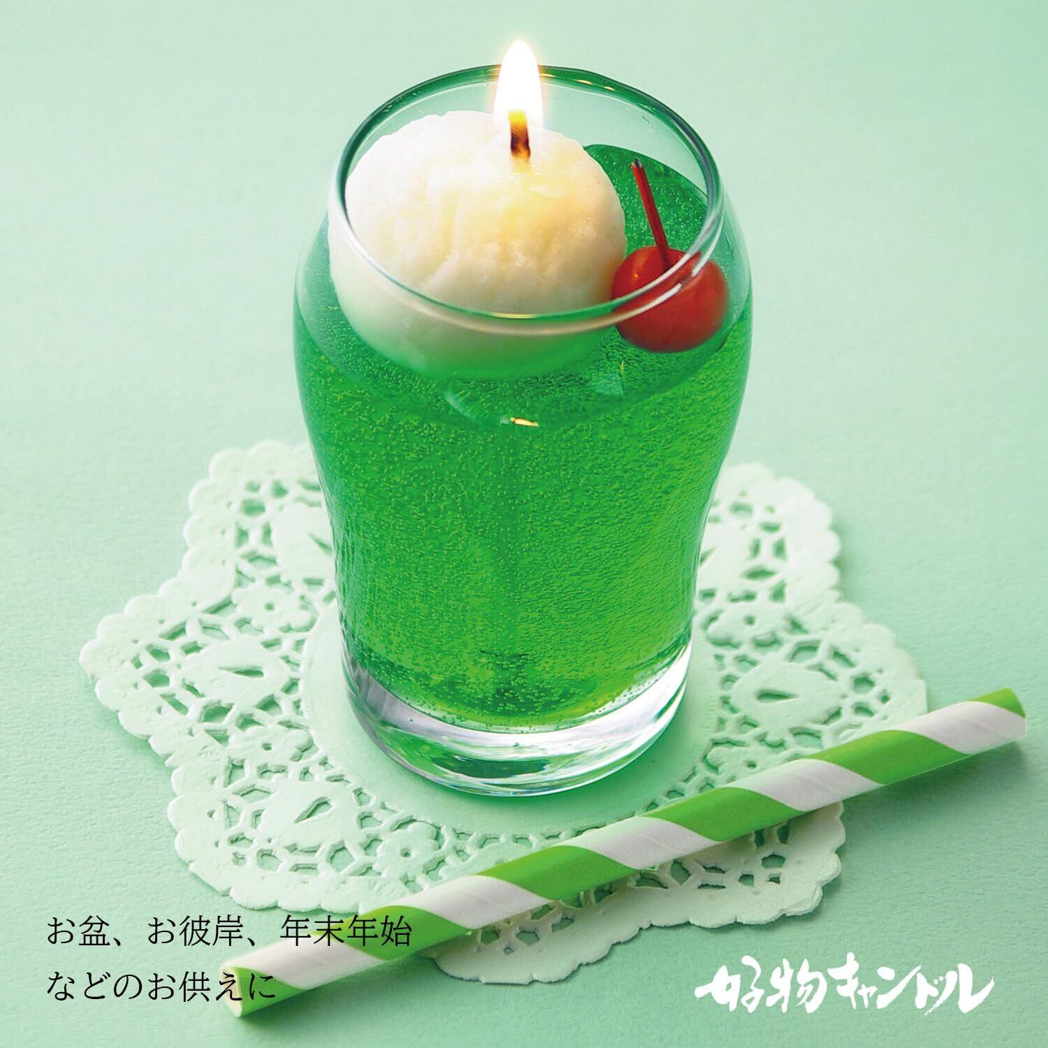 ●昭和レトロを感じる、昔ながらの喫茶店のクリームソーダがキャンドルになりました。●透明感のあるメロンソーダと、さくらんぼの赤のコントラストがポイント。●メロンソーダの甘い香り付き。
