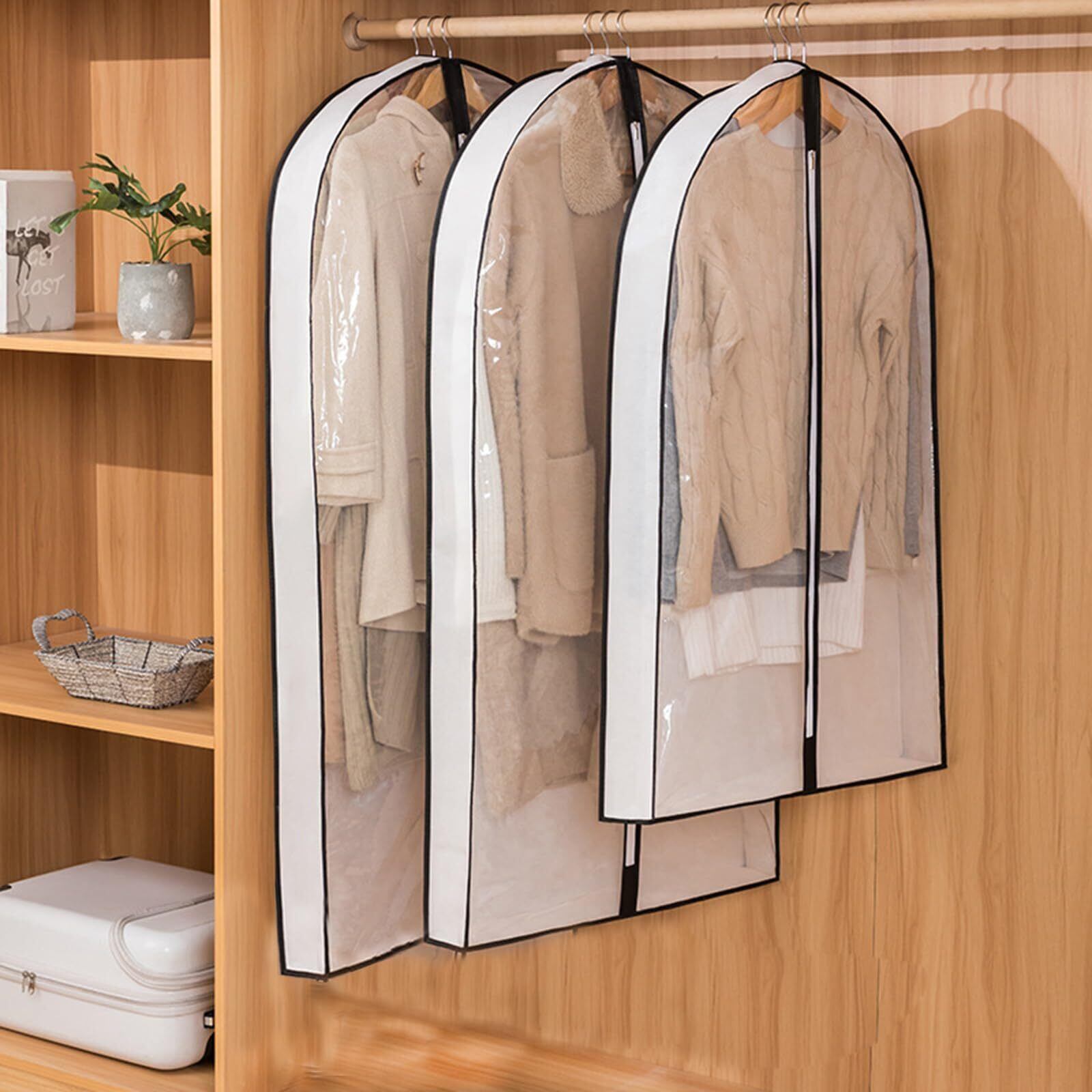 表面が透明フィルムなので中の洋服が見やすく。後ろは不織布なので通気性も良く、湿気も埃もカビも無く衛生的に洋服を保管できます。