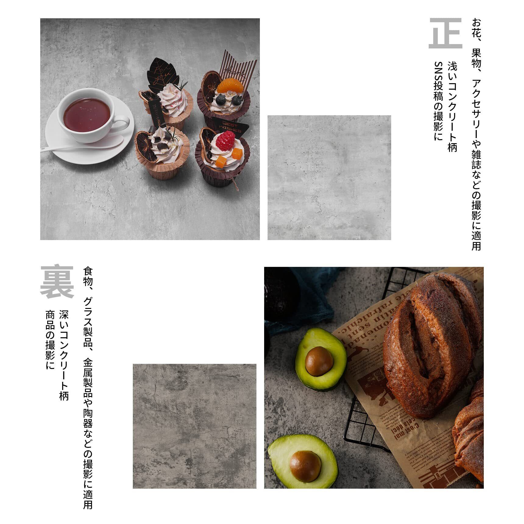 Meking 背景ボード 60x60cm バックグラウンド 両面異なる仕様 撮影用 写真撮影 バックグラウンド 木目柄 コンクリート柄 商品撮影 美食撮影 雑誌撮影など適用 バックル付き 2枚セット 木目+コンクリートセット