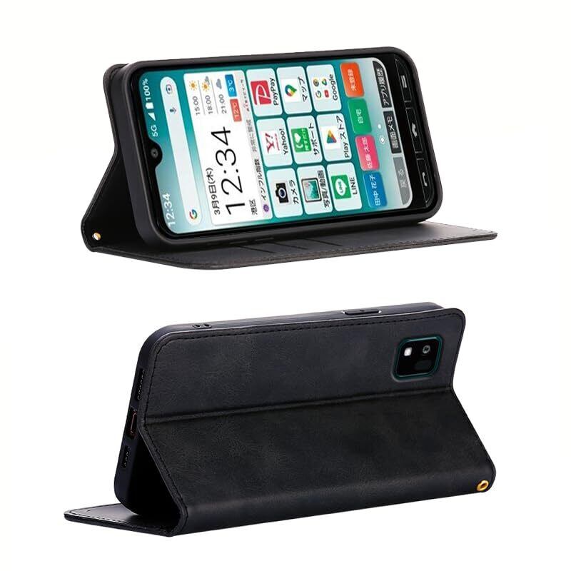 適用 京セラ かんたんスマホ3 A205KC ケース 手帳型 カバー PUレザー カード収納 財布型 耐衝撃 ケース マグネット スタンド機能付き 5色 (適用 京セラ かんたんスマホ3 A205KC ケース 手帳型) (ブラック)